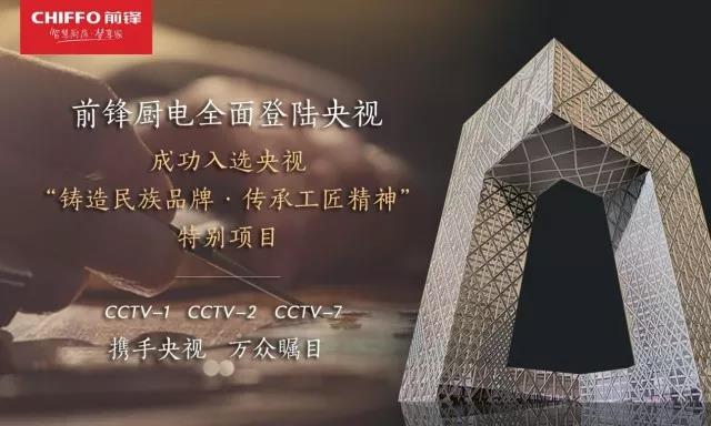 前鋒廚電強勢登陸央視,CCTV-1、CCTV-2、CCTV-7將全面開播