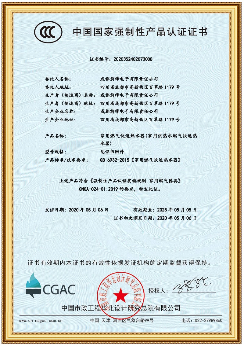 前鋒恒溫熱水器F805